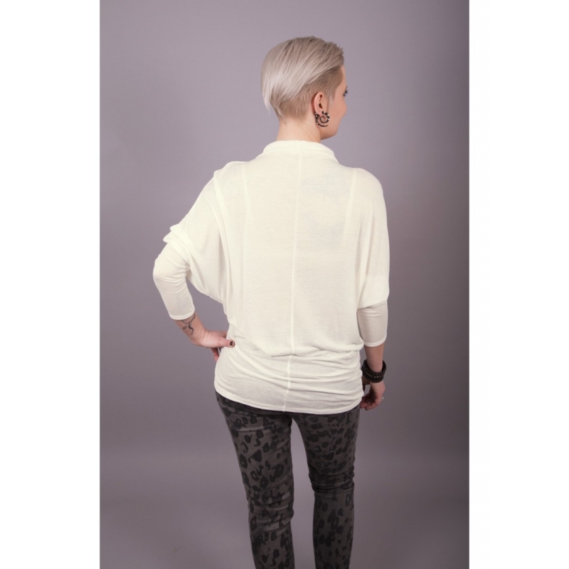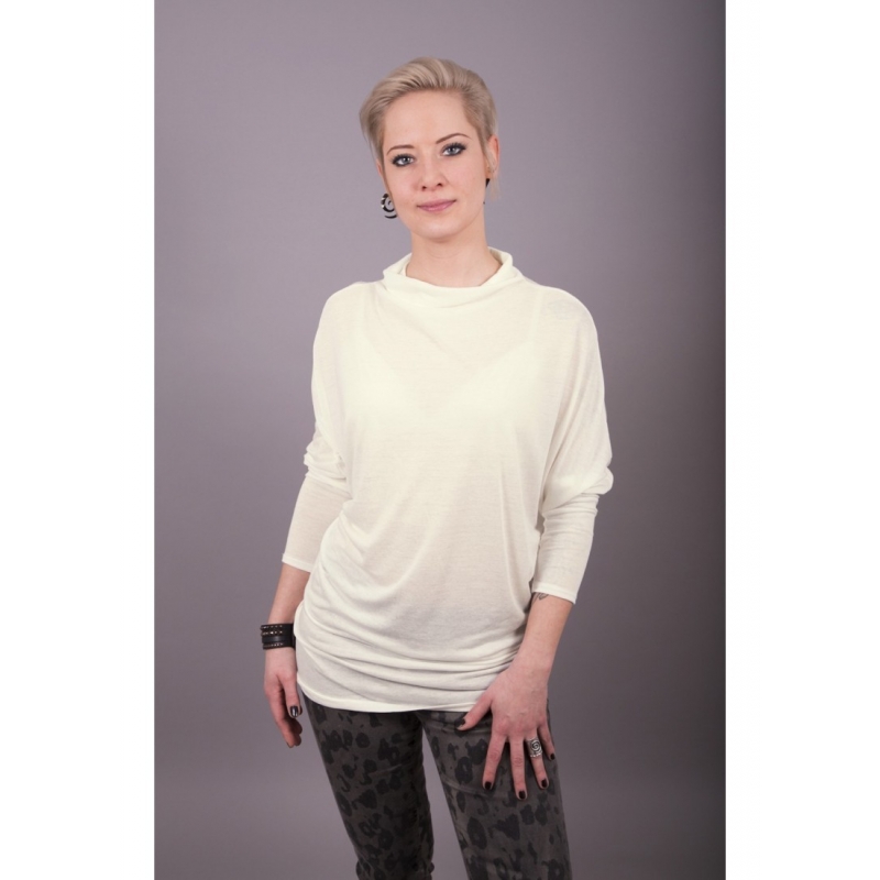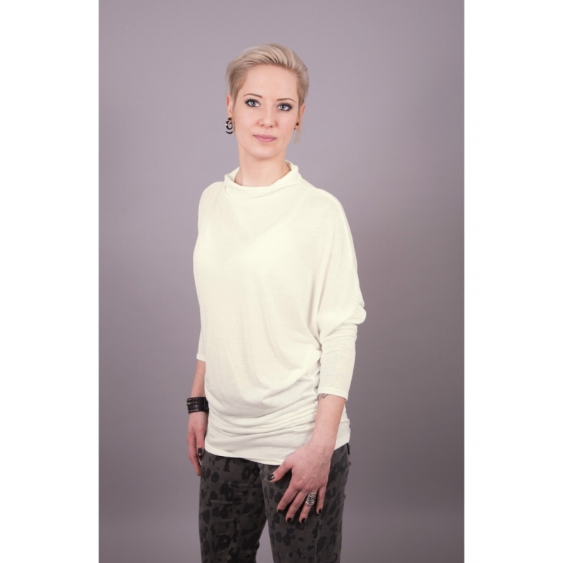 Longsleeve mit Fledermausärmeln aus leichtem Stoff in der Länge variierbar, kleiner Stehkragen